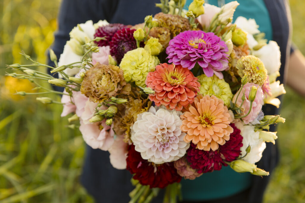 At our cut flower farm, we believe in quality, sustainability, and community. We grow every bloom with care, ensuring they are fresh and chemical-free. Our passion for flowers shines through in everything we do. We cherish our local roots and strive to brighten your day with our beautiful creations. Join us in celebrating nature and spreading happiness.